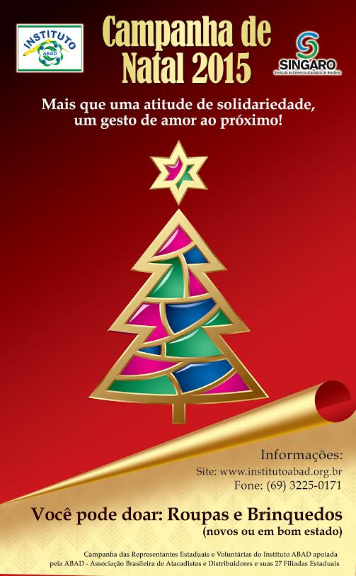 Com essa logo foi lançada nacionalmente a tradicional Campanha de Natal 2015, realizada pelo Instituto ABAD e suas filiadas. O Singaro já está se mobilizando com voluntários e parceiros para arrecadação de donativos. Na campanha realizada em 2014, foram atendidas mais de 500 famílias nos bairros periféricos. A campanha visa arrecadar roupas e brinquedos em bom estado de conservação e os interessados em fazer doações podem entrar em contato com o Singaro.